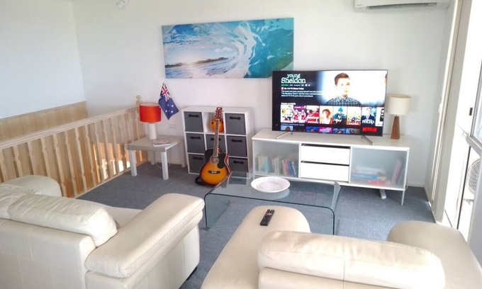 Shared entrance. Once upstairs its your 100% private apartment with own kitchen, lounge w/ leather couches, dining area, 1 bathroom & 2 bedrooms.