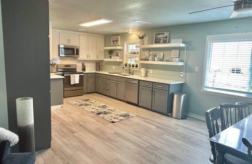 Stay comfortably in this newly renovated 3-bedroom lakehouse. With 2 queen beds and 2 bunk beds (full over full with twin trundle and twin over full) with extra fold out cushions that make twin beds , this charming property offers a cozy retreat for guests. Enjoy the outdoor living areas with large trees. The 2 bathrooms have walk in showers and all the comforts of home . There’s a laundry room and a game room that opens up with garage doors on either side. Should have access to a golf cart to take over to the state park and lake . Close to Westbay Casino, Chickasaw Point golf course, and soon to Hard Rock Hotel.