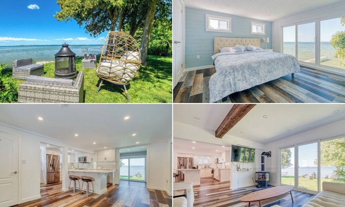 Be the first to enjoy this Gorgeous, private lake front cottage on Lake Simcoe. Newly Renovated from top to bottom, About 45 mins from Toronto. 3 bedroom (all rooms with non-blocking magnificent view of the lake), 2.5 bathroom. The great room on the main floor with an L-shape sofa can be used as the 4th bedroom. Sleeps up to 8 comfortably.