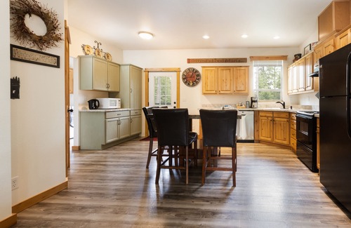 Black Bear Cabin is lovingly owned, cleaned, and maintained by us, not a cleaning company. The cabin is tucked into the woods of Martin City, Montana just 9 miles from the entrance to West Glacier National Park and 18 miles from Whitefish! Enjoy the trees and wildlife away from the noise of traffic. Self-check- in with door code! This cabin is available year-round and is a wonderful summer or cozy winter hideaway. Master bedroom: king size bed /medium soft mattress. Bedroom #2: queen size bed /medium soft mattress. Bedroom #3: Bunk bed with full size on bottom/single on top. Wii gaming console for your enjoyment. Kitchen is fully equipped and leads to a back deck for enjoying meals and a propane grill. We provide 1 can of bear spray for you to borrow on your hikes! And coolers for your use. If you are renting in winter, we have a cozy pellet stove with pellets provided.