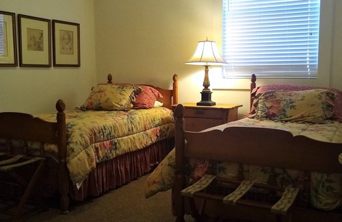 Large, comfortable 3-bedroom apartment will sleep up to 6 people. Nicely furnished and comfortable. Kitchen and dining facilities. Ideal for families that are relocating or escaping the snow or a larger group looking for a nice getaway in the country. Wood-burning fireplace with wood provided.