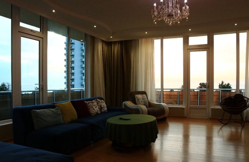 House is very nice with honest owners, everything is very near: sea, supermarket, bus station, botanical garden, Georgian restaurant, from city 10 minute by car, we have free bicycle, free transfer airport or train station, and price is with breakfast. Last floor is terrace and from this place sunset is lovely view, mountain views slowly join sea, green and blue colors views make you relax and comfortable with homemade Georgian red wine. its great location is on the last floor with amazing views. In the building is and elevator.