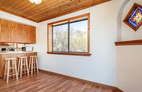 This listings consists of the smaller home of two separate homes, of which both are available on Airbnb - why not snag them both up! + a vast outdoor area where you can soak up the sun and catch a breath of fresh air in complete privacy and even hike around the property as it is built into a great rock hill where an old airstrip used to be. This house bask in healthy natural light that accents the tastefully picked furniture and tiled floors, further enhancing the setting unique to this part of Arizona.