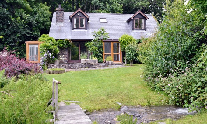 Bedroom 3: Single (3ft) Bed. Electric panel heaters, electricity, bed linen, towels and Wi-Fi included. Initial fuel for wood burner included. Travel cot and highchair available on request. Enclosed lawned garden. 85-acre grounds (shared). Bike store. Electric vehicle charging available at owners’ house, 200m away. Private parking for 2 cars. Please note: There is an unfenced stream in the garden.. This comfortable, detached cottage is set in a secluded location on the smallholding of Erw Goed, which sits peacefully within the Snowdonia National Park. Situated between the beautiful Mawddach Estuary and the foothills of Cadair Idris, just 3 miles from lovely sandy beaches at Fairbourne and Barmouth. The property is accessed by crossing some uneven ground and via a small footbridge over a stream. Guests have sole use of the ½-acre fenced garden with stream running through, there is a camp fire site and bothy available for outdoor cooking or camp fires, and guests are also welcome to explore Erw Goed’s 85 acres of woodland and hills with spectacular views over the estuary. You can also meet the livestock including ducks, chickens, bees and sometimes pigs. The Mawddach Trail is easily accessible and the market town of Dolgellau is 6 miles away. Walking, pony trekking, fishing and golf are available locally. Coed-y-Brenin, 10 miles, is a renowned mountain biking centre. Shop, pub and restaurant 3 miles.