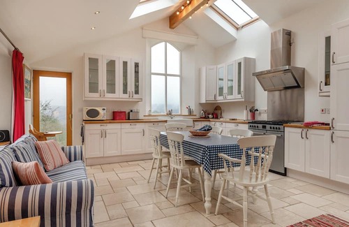 Bathroom: Bath With Shower Attachment, Toilet. LPC gas central heating (underfloor in living room and kitchen/dining room), electricity, gas, bed linen, towels and Wi-Fi included. Initial fuel for wood burner included. Travel cot, highchair and fireguard. Enclosed lawned back garden with sitting out areas, garden furniture and BBQ. Electric car charging available upon request with the owner direct. Private parking for 3 cars. No smoking. . Hopewell Barn has been converted to a high standard and boasts amazing views over the panoramic Wye Valley. Situated in the Forest of Dean, this barn conversion is a luxury ‘home from home’ with underfloor heating throughout the ground floor. The living room has an oak floor and a wood burner, perfect for those chillier evenings.