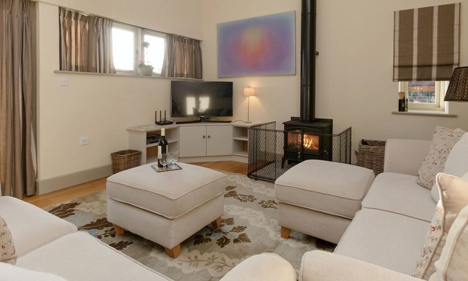 Shower room: With shower cubicle, toilet and heated towel rail.. Electric underfloor central heating. Stairgate. Please note: There is a step in the kitchen.. All properties: Gas, electricity, bed linen, towels and Wi-Fi included. Initial logs for wood burner included. Travel cot and highchair available on request. Welcome pack. Large, enclosed lawned garden with patio, garden furniture and BBQ. Enclosed lawned garden (shared with other properties on-site). Electric car charging point. Private parking for 2 cars. No smoking. Please note: Sorry, no hen or stag parties. . Nestled in a great location within the hamlet of Langham, these three detached cottages Bull Pen (ref UKC3883), Cedar Cottage (ref UKC3884) and Will’s Barn (ref UKC3885) have been renovated to a high standard and are in a great location to explore all that Dorset has to offer. Situated on the owners’ estate, with use of a very large field, perfect for holidaymakers to unwind and relax in. Each property really does have the ’wow factor’ offering underfloor heating, warming wood burners and beautiful wooden beams.