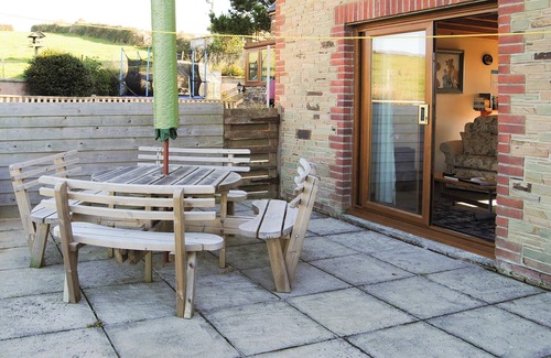 Bathroom: Bath With Shower Attachment, Toilet. Stairgate. Wi-Fi included.. Both properties: Air source heat pump central heating and electricity (first £10 included, remainder by meter reading), and bed linen included. Cot and highchair. Utility room with £1 coin-operated washing machine and tumble dryer (shared with other cottage on-site). Payphone (shared). Enclosed garden with patio, garden furniture and barbecue. Private parking for 2 cars. No smoking. Please note: Couples and family bookings only. No pets in July and August.. Situated in a lovely rural valley and surrounded by open countryside, this pair of delightful holiday cottages enjoy wonderful views over to the sea at Mawgan Porth. Away from farm traffic, on a small organic working cattle and sheep farm, enjoy watching the young farm animals, or feel free to walk the nature trail set in 15 acres of woodland valley, which is home to a variety of wildlife. Mawgan Porth, 2 miles, has a wonderful sandy beach and an 18-hole golf course. Both the resorts of Newquay and picturesque Padstow are within an 8 mile radius. The Eden Project is also within easy reach and Watergate Bay, is only 3 miles away. The idyllic village of St Mawgan, 1 mile, has interesting antique and craft shops, a pub and post office with tea room and a Bonsai nursery. Porth View (B5601) and Merlin View (B5602) can be booked together to accomodate up to 12 guests.