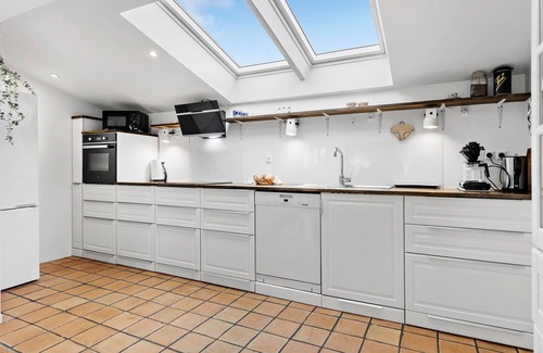 Relax with your loved ones in this tasteful vacation home. The cozy wooden floorboards, the bright walls and furniture and the skylights let the house shine in daylight. Make yourself comfortable on the sofa or settle down in the armchair by the wood-burning stove and read a book in peace.