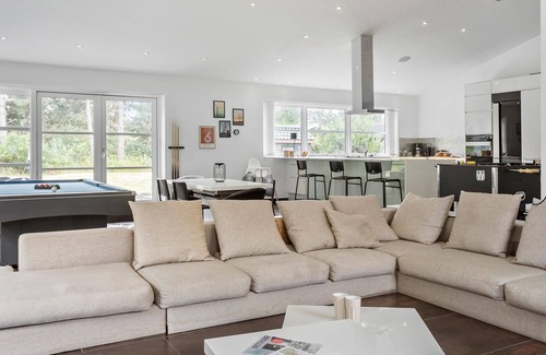 Situated close to Rødby ferry port, your holiday home offers many wonderful experiences and a pleasant atmosphere. This inviting holiday home impresses with its spacious indoor and outdoor areas and numerous activity options. The spacious, open-plan kitchen invites you to prepare delicious meals together. The open fire creates a real Danish hygge atmosphere. And in the activity room you can crown the family champion in billiards, table tennis or darts. Relax in the hotel's own whirlpool.
