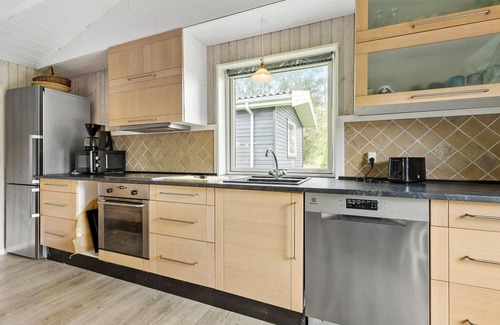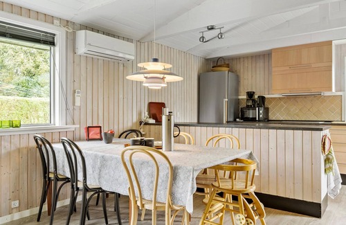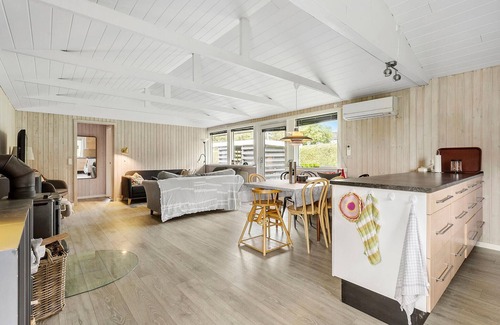 This family-friendly holiday home in Hyllingeriis offers you a homely atmosphere with classic wooden furnishings that immediately exude cosiness. Whether it's social games evenings in the living room or warming up in front of the wood-burning stove, spending time together is a highlight here. Enjoy your morning coffee on the terrace while your children run around in the spacious garden. In the evening, you can gather around the fire pit, roast stick bread and marshmallows and enjoy the tranquillity of nature.