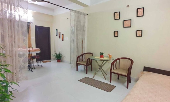3Bedroom with attached bathrooms.Well equipped kitchen with refrigerator. CCTV surveilance in common area,24/7 Caretaker ,Separate cleaning staff. Suitable for Family Vacations and corporate/music professionals.