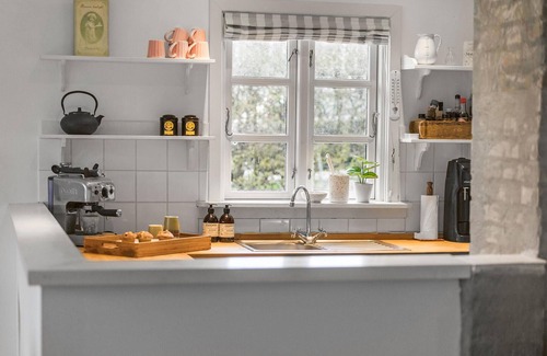 Step inside and look forward to your vacation days in this bright and charmingly furnished house. Cosiness is a top priority here and invites you to relax in both the main house and the outbuilding. The rooms are flooded with natural light and offer you quiet corners in which to read an exciting book, be warmed by the wood-burning stove, or take a seat in the kitchen in the dining area to cook together.