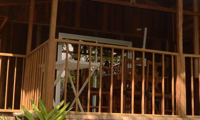 Azobé wooden chalet on the river and forest side. 3 bedrooms and 1 living room, kitchen area, 3 toilets and separate shower area. Ideal for families (up to 6 people with 2 bedrooms with 1 double bed and 1 bedroom with 2 single beds).
