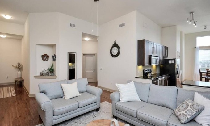 Luxurious mid-rise just minutes away from NRG, Rice University, the Museum District, the Galleria, Herman Park, Medical Center, Toyota Center, shopping and restaurants. This home boasts of 15 foot ceilings, hard wood floors, a spacious open floor plan, and 2 soaking tubs. It comes fully furnished with all appliances. All utilities included. Enjoy Netflix, Hulu, and Disney Plus all on high speed 1GB internet service. Schedule your viewing today! Houzlet publishes listings on Vrbo; which in turn, allows tenants to instantly rent seasonal rentals. Houzlet’s properties are managed by licensed real estate agents. Although the property is an instant rental, it’s possible there can be another pending application. If the home is not available, we can offer you another suitable option or you can cancel for free.