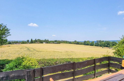 In the midst of the protected landscape area Harz and southern Harz foothills welcomes you this stylish wooden house with magnificent unobstructed views over the fields to the Brocken.