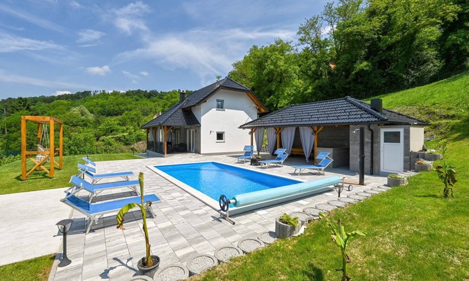 3 bedroom cozy home in Vrtnjakovec is located in Krapina-Zagorje. 3 bedroom cozy home in Vrtnjakovec provides accommodation, featuring Laundry, Parking, Pool, among other amenities. This House features Laundry, Parking, Pool, to make your stay a comfortable one.