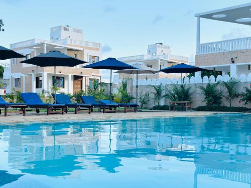 3 Bedroom Deluxe Villa-Mfalme in Diani features accommodations in Diani Beach near Kinondo Shwari Beach and Kaya Kinondo Sacred Forest. With pool views, this accommodation provides a terrace and a swimming pool. The villa offers rooms with air conditioning, free private parking, and free Wifi. The units come with tiled floors and feature a fully equipped kitchen with a microwave, a flat-screen TV with streaming services, and a private bathroom with shower and slippers. A fridge and kitchenware are also offered, as well as a kettle. At the villa complex, units are equipped with bed linen and towels. Kids pool is also available at the villa, while guests can also relax in the garden. Colobus Conservation is 4.1 miles from 3 Bedroom Deluxe Villa-Mfalme in Diani, while Leisure Lodge Golf Club is 8.8 miles from the property. Ukunda Airport is 8.1 miles away.