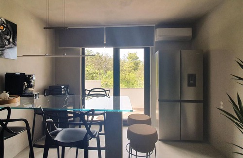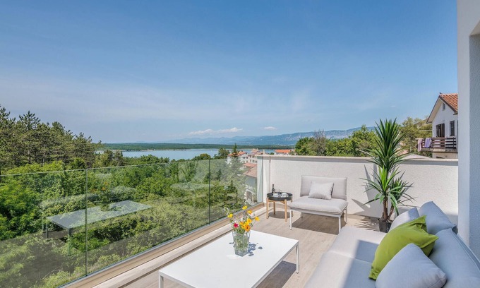 Spend a magical vacation on the golden island of Krk. Stay here in the small coastal town of Klimno, where this semi-detached vacation home welcomes you in contemporary, luxurious furnishings. You will find a wonderful atmosphere that will sweeten your vacation time.