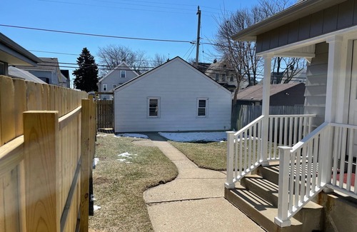Private house, fenced in backyard, 2 car garage. 5 Min from airport, 5 min to Lake Michigan, and 15 min to downtown Milwaukee. High speed Internet with small office. . Grill or have a little fire in the fenced in backyard. Exterior camera for security