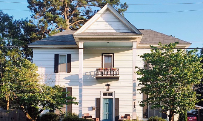 Discover this 3-bedroom, 2 bathroom gem in Arkadelphia. This 120+ year old house has a zero-gravity adjustable king bed downstairs in the master, 2 rooms upstairs, each with a queen beds. These along with extra sleeping areas, make it perfect for families. With TVs in every bedroom and a patio seating area with fire pit, guests can relax in style. The patio has an indoor area that we call the Tin Goose with TV, refrigerator, table & chairs and other furniture.