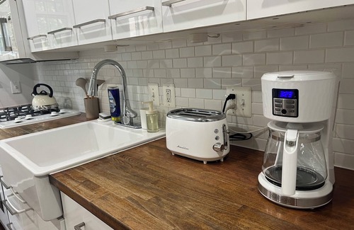 The property includes one and a half bathrooms. The main bathroom offers a refreshing shower, soft towels, and a hairdryer, while the half bathroom on the main floor adds extra convenience during your stay.