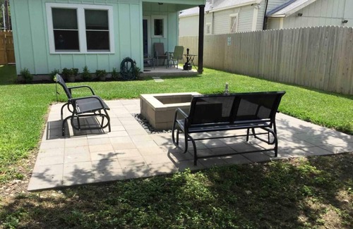 Outdoors, we have a patio with a fire pit and glider seating in the back yard. There are also individual seats and tables that can be moved to suit your preferences.