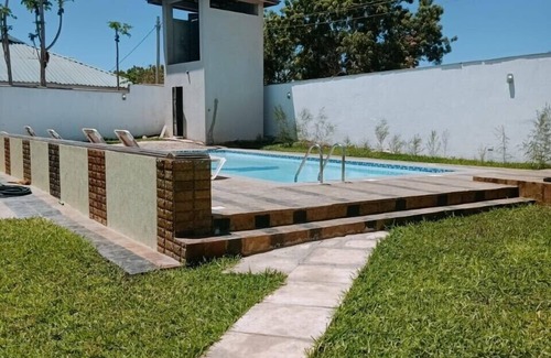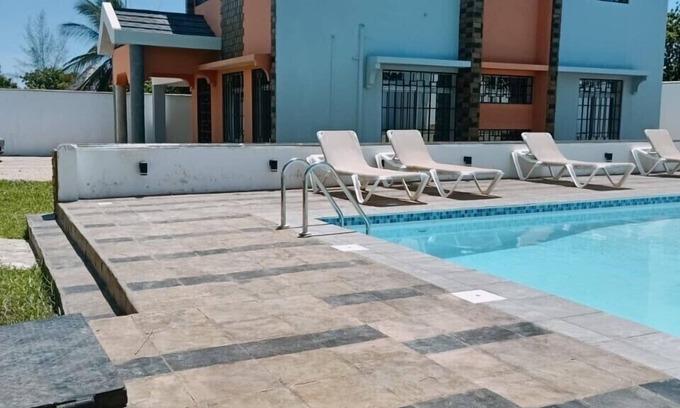 Yes, this Diani Beach house has a swimming pool. Check the Facility Overview section for details about the pool and other available facilities.