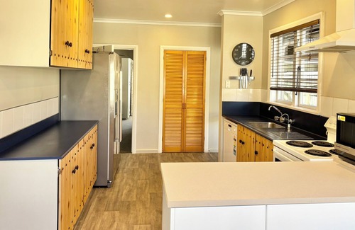 Only 5 mins walk to Nelson Hospital, this sunny, fully fenced home is just a few mins drive to the Nelson airport, Tahuna Beach and Nelson’s vibrant city centre. Perfect for families, groups, or business travellers, it offers a warm living area opening to a sun-filled deck for barbecues or relaxing. Secure fencing makes it safe for kids and pets. Some traffic noise at peak times due to the corner location, but the spacious layout and inviting feel make it easy to unwind—an ideal base for holidays or work trips.