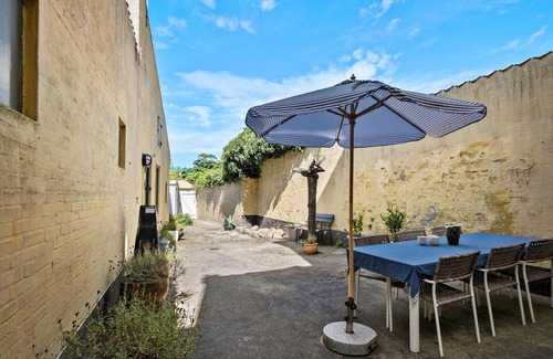 Located in the heart of the picturesque old town of Faaborg, your idyllic townhouse has been lovingly renovated to preserve its original atmosphere. On three levels, the house combines the typical charm of times gone by with all the amenities you could wish for on a relaxing holiday. The holiday home conveys a feeling of peace and security, and the spacious living room/kitchen area invites you to spend convivial evenings cooking together and enjoying your culinary creations. The cosy living rooms offer enough space for relaxing hours with a good book, an exciting film or fun games.