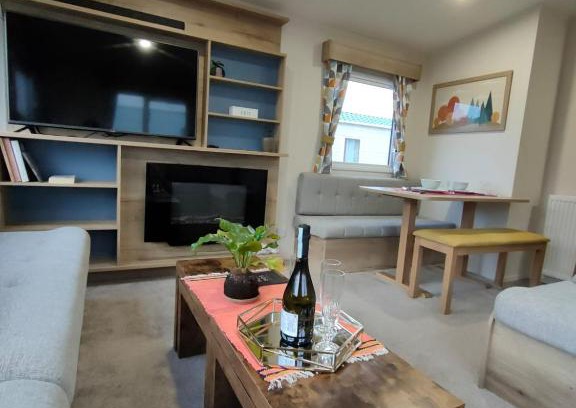3 Bedroom Luxury Caravan - Vans With Business Sign Not Allowed offers accommodations in Port Seton, a 3-minute walk from Seton Sands Longniddry Beach and 7.9 miles from Muirfield. Providing a restaurant, the property also has a garden and a bar. There's a children's playground and guests have access to free Wifi, free private parking, and an electric vehicle charging station. Featuring a patio and garden views, the resort village includes 3 bedrooms, a living room, cable flat-screen TV, an equipped kitchen, and 1 bathroom with a walk-in shower. Towels and bed linen are available in the resort village. There's also a seating area and a fireplace. A mini-market is available at the resort village. For guests with children, the resort village features an indoor play area. A bicycle rental service is available at 3 Bedroom Luxury Caravan - Vans With Business Sign Not Allowed. Arthur's Seat is 13 miles from the accommodation, while Dalhousie Castle is 13 miles from the property. Edinburgh Airport is 21 miles away.