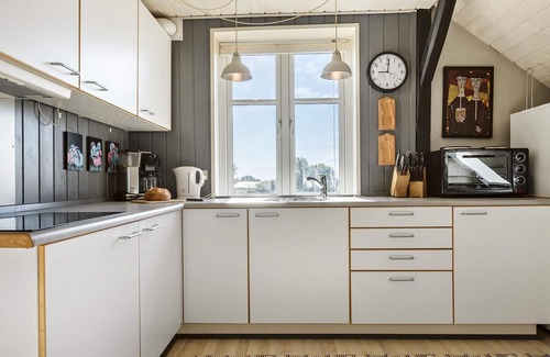 Experience classic furnishings and a cosy ambience in this charming holiday apartment in Skovmose Strand. The spacious interiors are tastefully decorated and offer you comfort and tranquillity after a day at the beach. The bright, inviting atmosphere is further enhanced by the sea view from the first floor. Get on with your daily routine and start your holiday by preparing a delicious breakfast in the kitchen, which you can enjoy on the open terrace. Let yourself be enchanted by the elegant simplicity and cosy flair of this accommodation.