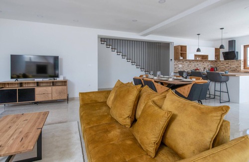 Travel to Kavran with your extended family and enjoy the comfort, design and light-flooded rooms of Villa Lilliana to the full. Here you can relax, unwind in the cozy bedrooms and get together on the first floor to relax on the sofas, watch movies, play games at the dining table or cook together in the open kitchen. High-quality materials and tasteful furniture create a wonderful feeling of living.