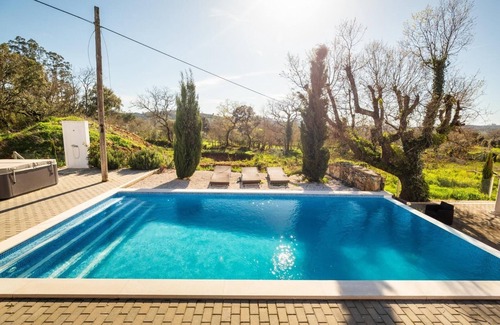 Located near Tomar and Ferreira do Zezere (15 minutes drive) enjoy what this 3-bedroom villa has to offer. Guests will find comfort and lots of space to relax inside the modern house but also in the outside. There’s a private swimming pool and heated whirlpool. The property is part of an ancient forest where guests can walk around and visit an 400 years hold stone house ruins. Nature is all around the property. Beautiful landscapes just around the corner and even more beautiful about 15 kms away. Plenty of side roads for walking, tracking and biking. With 3 spacious rooms and 3 bathrooms, a large living room and kitchenette the guests will find all the confort they need after a full day of outdoor activities. The terrace and the barbecue will provide the extra contort outside. Experience the smooth atmosphere of this amazing house with AC and WiFi. We look forward to hosting you at our place.
