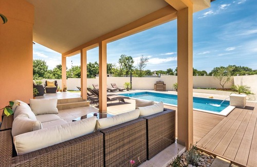 This beautiful holiday home with pool is located in the small village of ian and is just a few minutes' drive from the beautiful pebble and rocky beaches. The fenced plot with a well-kept garden has a swimming pool, barbecue and outdoor terrace. The interior consists of three bedrooms, two bathrooms, a spacious living room with kitchen and dining area. Additional entertainment is provided with table tennis, darts and table football. The proximity to the popular tourist centres of Medulin and Pula is certainly another advantage of this holiday home. Visit the historic cultural sites and enjoy the summer events in the famous amphitheatre.