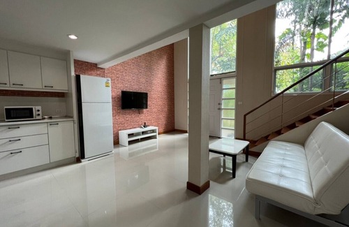 Escape to a quiet townhome in Bangkok with three cozy bedrooms. This property offers shared fitness space, shared pools, a shared kids' room, WiFi, a washing machine, and AC for your convenience. We hope you'll enjoy your stay at our townhome.