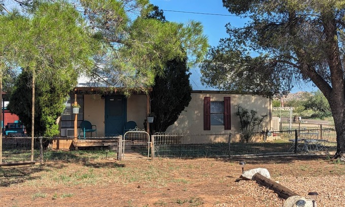 Stay comfortably in Dragoon at this 3-bedroom property. Enjoy the raw beauty and peacefulness of the Dragoon Mountains in this rustic, vintage home. Nestled in a serene setting, this property offers 2 bedrooms with 2 full beds and one pull out sofa bed in additional unattached bedroom, 2 bathrooms, one with a shower and one without, and fully furnished with essential amenities, as well as heating and AC. The welcoming atmosphere of this quaint retreat will make guests feel right at home. Enjoy beautiful, relaxing views on the covered patios.
