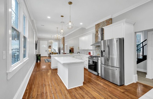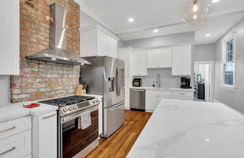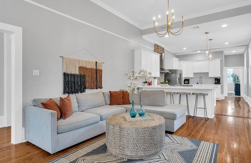 Spacious Uptown retreat steps from St. Charles Ave & Magazine Street! This 3BR/2BA historic home blends tall ceilings, hardwood floors & original millwork with a modern quartz kitchen & stainless appliances. Enjoy a fenced backyard, front porch seating, gated parking & smart-lock check-in. Walk to Mardi Gras parades, boutiques & dining. Perfect for families & groups of 6. Book your unforgettable NOLA getaway today!