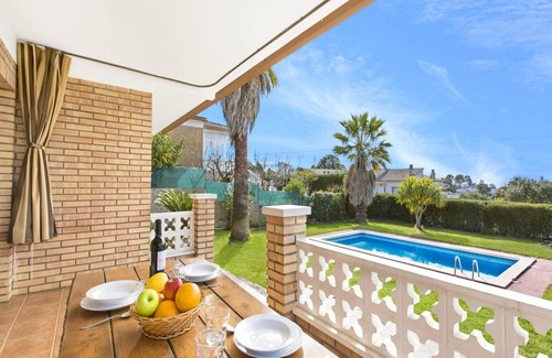 This charming villa offers a comfortable stay with spacious accommodations for up to 6 guests. The property features three cozy bedrooms, including one double bed and two rooms with twin single beds. Guests can enjoy modern amenities such as free Wi-Fi, a TV, and a private swimming pool, perfect for relaxation. The villa is pet-friendly, allowing pets upon prior request with an additional charge, making it an excellent choice for families traveling with their furry companions. A private parking area is also available for added convenience. Located in a peaceful area, the villa is just a short drive away from the beautiful beaches of Costa Brava, where guests can relax by the sea or partake in water activities. Local attractions such as charming cafes, markets, and restaurants are nearby, offering an authentic taste of the region. For those seeking a lively atmosphere, the center of Lloret de Mar is only a few kilometers away, where visitors can explore shops, nightlife, and other popular destinations. The villa also features a fully equipped kitchen, ideal for preparing homemade meals during your stay. The kitchen includes all necessary appliances such as a fridge, microwave, oven, toaster, and dishwasher. Two well-maintained bathrooms with showers are available for guest use, and a lovely outdoor space with a built-in barbecue and basketball court adds to the villa's appeal. With all the essential comforts and added amenities, this property ensures a pleasant and relaxing experience.