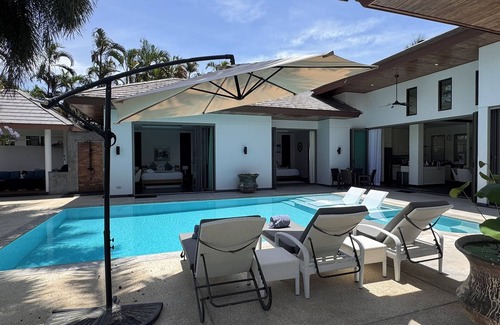 Enjoy your beach holiday at Baan Mandala v7 - A newly renovated 3-bedroom pool villa, located just a short 500-meter or 7 minutes walk from Bangtao Beach - activities, beach clubs, restaurants, shops. Boat Avenue and Porto de Phuket are within short driving distance. The villa is equipped with cooking essentials, indoor kitchen and BBQ kitchen. Google Home system and Nest speakers are installed around the house. Our housekeeper will provide daily cleaning except Sunday.