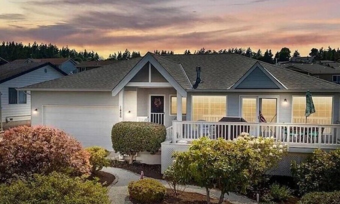 Enchanting waterfront retreat on Camano Island, WA. This three-bedroom cottage offers sweeping Puget Sound and Mt. Baker views. Luxuriate in the private hot tub within your own sunroom, and savor the fully equipped kitchen. With exclusive entry to the nearby country club for added recreation, this is an ideal destination for a serene getaway. Explore hiking trails and local shops nearby, and experience island living at its finest at our Sky Guest House.