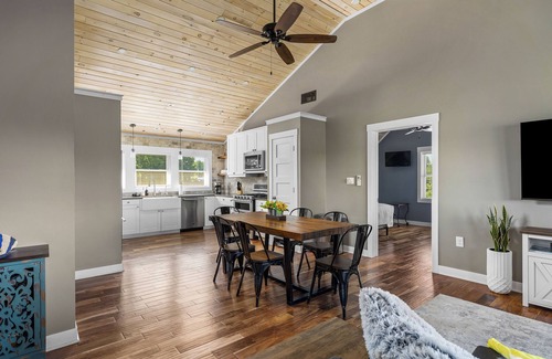 Perfect for large families or group getaways, this collection includes Cabins 8, 9, 10, and the Barndominium Loft—offering a total of 6 bedrooms, multiple living areas, and sleeping space for up to 22 guests. Enjoy remodeled kitchenettes, full kitchen in the loft, private baths, air conditioning, cable TV, and high-speed internet. Relax on private decks, grill outdoors, or gather in the bar and game area. A unique and comfortable Arcadia escape for unforgettable memories.