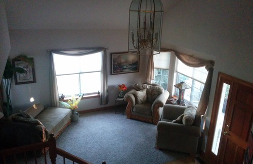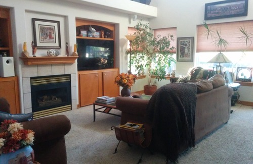 My home is on the 12th tee of Indian Peaks (public) golf course, within walking distance of several bus routes, shopping, rec centers, clubs, etc. The space includes 3 bedrooms: one king master en suite, one queen, a triple (a bunkbed, both of which are doubles and one single double) upstairs, with a shared bath for the queen and triple. There's also a full kitchen, living room, family room, dining room, deck, and laundry. I would be staying periodically in the ground-level floor, with a separate entrance. Therefore, the lowest level of my 3-level home is off-limits. I travel a lot and would also be spending most of the year with my daughter and grandchildren in NYC.