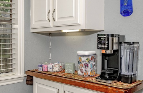Fully Equipped Kitchen: Includes a Ninja coffee maker, a variety of coffee pods, and all the essential cookware. Prefer to brew a full pot? Bring your favorite ground coffee!