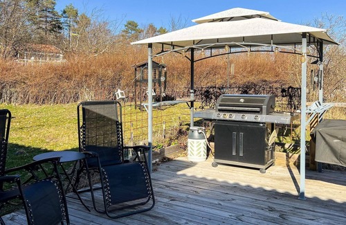 Welcome to a nice house in Färentuna, which is one of the Ekeröarna islands just outside Stockholm. The house is nicely and modernly furnished with a large terrace with outdoor furniture for cozy summer evenings. There is a barbecue under cover, which you can grill even if it rains if you want. Inside the house there is an open living room and kitchen, two bedrooms. Today there is a double bed in one bedroom and a bed that is 120 in the other, but it might become a day bed that can accommodate two in that room. A spacious bathroom with washing machine, shower and toilet is available, as well as a separate toilet. The kitchen is well equipped for a comfortable holiday. On the plot the owner rents out a smaller house with a double bed and a 140 bed, with kitchen and bathroom if there are more of you who want to travel together but still live separately. The houses are close to each other. House number 62661. On Ekerö there is a lot to discover and the bus stops near the house if you want to leave the car at home. You can visit Drottningholm Palace, where our royal couple lives, you can take the boat into central Stockholm from Ekerö Centrum, a nice boat trip. There is a lot of nature and water on the Ekeröarna Islands, nice cycle paths and hiking trails.