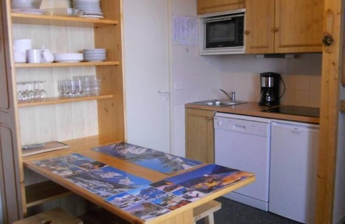 30 m² apartment located at the Reine Blanche 6 people including 4 adults. Max. , very quiet, comfortable, decreasing rates depending on the duration, close to the slopes, ski out at the foot of the building, beautiful 4.50m2 balcony facing south west. Possibility private parking in addition. This apartment is located on the 5th floor on the mountain side, 1st floor on the street side. It has a single bedroom with a 140 bed, possibility of installing a BB bed next to it, as well as a small bedroom with 2 bunk beds and a wardrobe. This bedroom is also closed and has a window. All the comfort, independence, and the ski-in ski-out outing will seduce you.