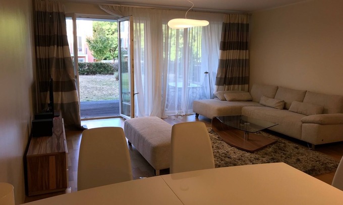 The luxury apartment, which was completed in 2012, is located just 5 minutes walk from Volkspark Friedrichshain, Berlin. Up to Alex you drive by car only 10 minutes. It is located in the high ground floor and has its own garden and Tarasse. The apartment has a bespoke modern brand kitchen equipped with high-end appliances. The kitchen has an oven, microwave, fridge, dishwasher, induction hobs and all the utensils and crockery you need for a relaxing stay. The apartment has two separate bedrooms, one bedroom is furnished with a double bed, a second with two single beds, with a single bed a pull-out drawer with a mattress (200x80), so that sleeps 3 people. From the spacious 30 m2 living room you go into the garden. In the apartment there are two bathrooms (bath and shower). A cot is available in the apartment.