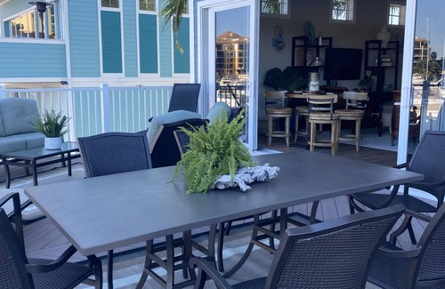 Second floor features a living room, bedroom and balcony. The bedroom has a queen size bed with private bathroom with bath towels, smart TV with Roku, DVD player and surround sound, closet, and 2 beach towels. The gourmet kitchen is fully stocked. The entertainment space flows onto a spacious deck that overlooks the Marina at Cape Harbor including an outdoor grill by Firemagic. Inside kitchen includes; Whirlpool stainless steal refrigerator, dishwasher, microwave and electric oven. Keurig coffee and latte machine, Bereville toaster, Farberware cooking and baking utensils, variety of spices. Pfaltzgraff silverware, Granitestone pots and pans. The openness of the main living area makes entertaining an effortless treat.