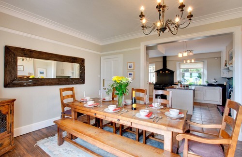 Dining room: traditional wooden refectory style table with seating for up to 10, open fire, music station. Sea views.