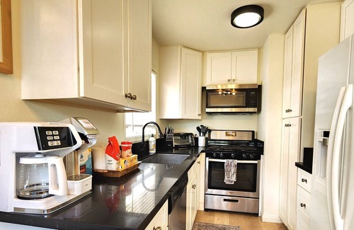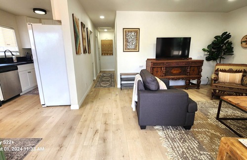 Entire front house with large enclosed private yard. Located in a popular Highland Park area near Figueroa & York. Remodeled 2 bed / 1 bath with tub & tankless water heater. Fully equipped kitchen, plus in-unit laundry. Includes hi-speed WiFi & 50" smart tv, off street parking, & mini-split air & heat in each room. Urban area close to restaurants, grocery stores & bus lines. 15 minutes to downtown LA and/or Old Town Pasadena. Extended stays available upon request.