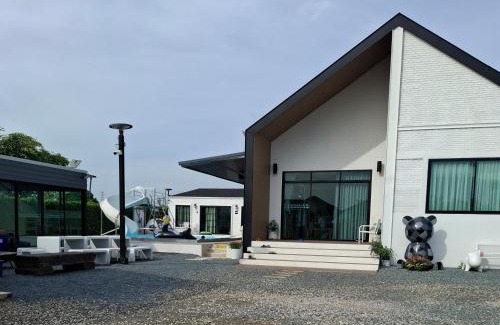 Offering a garden, 373 pool villa offers accommodations in Chiang Rai. This property offers access to a balcony, free private parking, and free Wifi. The villa provides an outdoor swimming pool with a water slide, as well as a hot tub and daily room service. Providing a terrace and pool views, the spacious villa includes 5 bedrooms, a living room, flat-screen TV, an equipped kitchen, and 5 bathrooms with a shower. Guests can enjoy a meal on an outdoor dining area while overlooking the garden views. For added privacy, the accommodation features a private entrance. Wat Pra Sing is 5.9 miles from the villa, while Statue of King Mengrai is 6 miles away. Mae Fah Luang - Chiang Rai International Airport is 1.2 miles from the property.